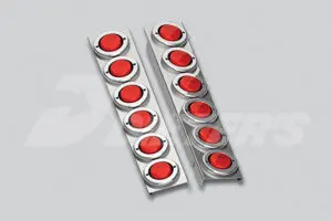 For Peterbilt 389, 388, 379 and 378 models. Standard can. With 2″ round red clear starburst lights with bezels.