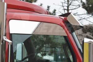 Door window shade for 2022+ International HX models with passenger side downview mirror. Will not fit on models with door mounted vanes or mirrors that have an “upper mount” on the door. Sold in pairs.
