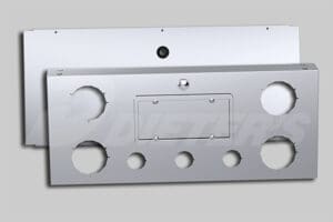 For International models. Bumper face swing plate for 1 plate. Measures 14″ wide x 8.45″ tall.