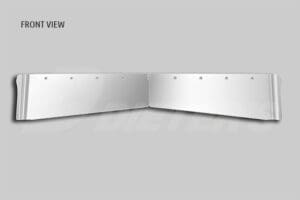 For Western Star 57X, 49X and 47X models with mid-roof, high-roof or Stratosphere roof. V-bottom style sunvisor, 15.75″ at the center and 14.75″ at the ends. Front lit with (5) amber 3/4″ round LED lights. OEM replacement.