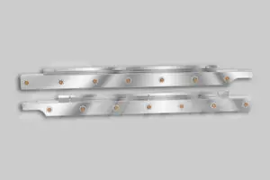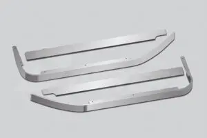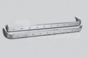 For 2013+ Peterbilt 579 models with 117″ BBC and underbody exhaust. Cab skirts, 80″ sleeper skirts with extenders. 2.5″ wide. Plain. 2 block heater cutouts.