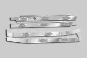 For Peterbilt 579 (including New Model/MLU 579) and 567 models with underbody exhaust. Use with 44″ sleepers with extenders. Underlit with amber clear 3/4″ round LED lights. Measure 2.5″ wide. Not for UltraLoft or EPIQ package.