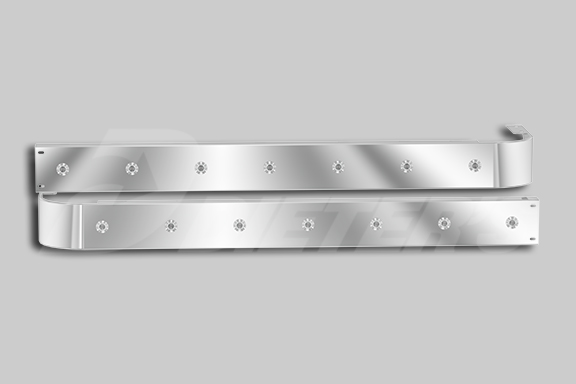 These sleeper skirts are designed for 2007+ 367, 388/389 Short Hood (123″ BBC) and 2007-2017 389/389 Long Hood (131″ BBC) Peterbilt models. Will not fit 2018+ 389 Long Hood (131″ BBC) models. For 48″ (58″ new) sleepers with extenders. Extender skirt available as MD8345. Sold in pairs, each of the sleeper skirts have 7 amber clear 3/4″ round LED lights. Measure 4″ wide. Lights, hardware and harnesses are included.