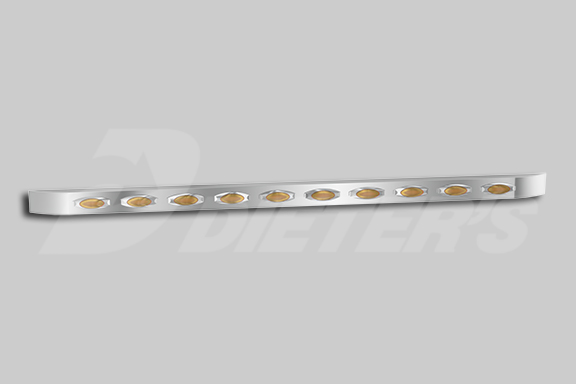 For Texas style bumpers. With 10 X2AG2 LED lights. Welded and polished corners. Closed back. Measures 94″ long by 3″ wide.