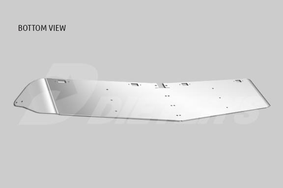 Curved glass extended sunvisor designed for Kenworth T300, T600 and T800 DayCab models.  This curved glass extended sunvisor is an extra deep extended stainless steel sunvisor designed to replace lighted factory fiberglass sunvisor. Measures 12.5″ deep. Light holes provided. All hardware included.
