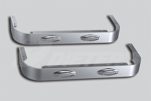 This elite kit is designed for 2018+ Peterbilt 389 long hood (131″ BBC) models. Kit includes lower hood panels, cowl/hood extension panels and cab skirts. Driver side 4″ wide, 37.85″ long. Passenger side measures 1.58″ tapering to 0.82″ wide and 43.57″ long. Sold as a kit, with X2ACG2 LED lights (0/4/3, 0/4/0). Hardware, lights and harnesses included. The elite panels are designed to follow the contour of the cab.