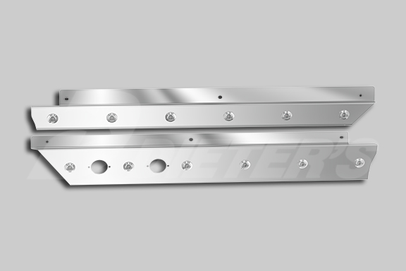 Cab skirts designed for Kenworth T880 and T680 models with dual exhaust. Will not fit 2024+ DayCab models. Will not fit MLU/T680 Next Gen models. These stainless steel panels mount to underside of the cab, with some drilling required. Sold in pairs, each of the skirts have 6 amber clear 3/4″ round LED lights. With 2 block heater cutouts. Hardware, lights and harnesses are included.